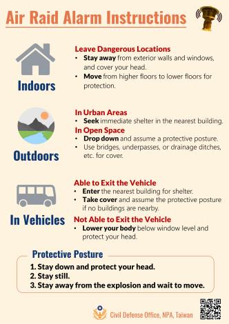 檢送內政部「防空避難指引」中文圖卡與英文圖卡供參。
