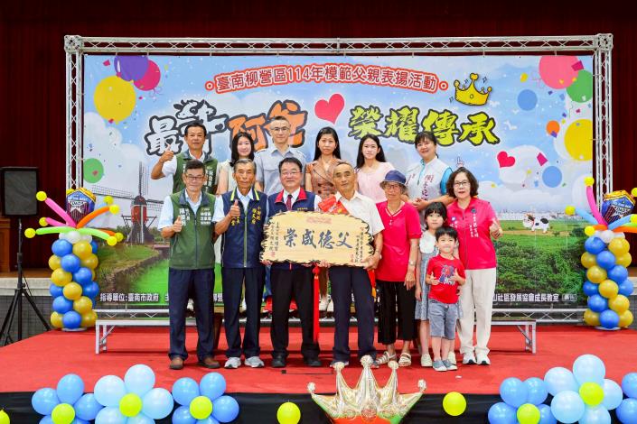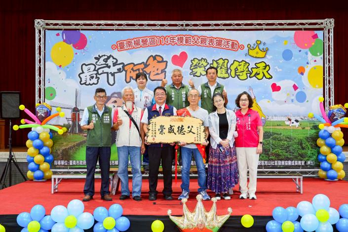 其中年屆九旬的東昇里何老份先生,是本次表揚中最年長者。自幼喪親的他,身為家中么子,早年即挑起家庭重擔,與妻子攜手同甘共苦,含辛茹苦養育四名子女,即使生活清苦,仍堅持讓孩子接受良好教育。他以身作則,透過行動教導子女責任、堅毅與誠信。如今兒孫滿堂、子女事業有成,皆是其言教與身教的最佳見證。何先生亦熱心參與社區事務、關懷鄰里,是名副其實的模範父親。