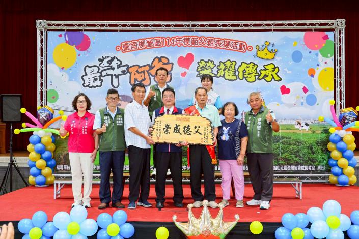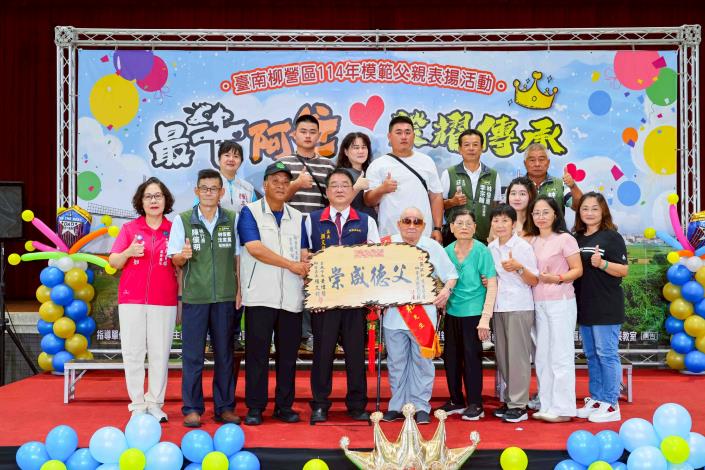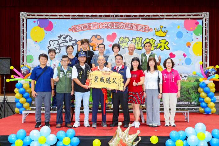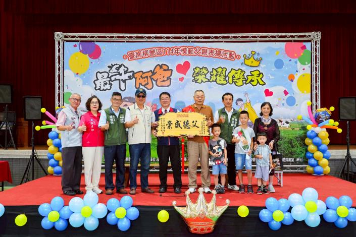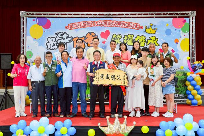柳營區公所於7月12日(星期六)上午在柳營國中舉辦「114年度模範父親表揚活動」,誠摯向13位來自各里的模範父親致敬,表彰他們長年為家庭默默付出、無私奉獻的精神。其中,東昇里何老份先生更將代表柳營區接受臺南市晶鑽爸爸的殊榮,其一生的堅毅與慈愛,堪為地方楷模,溫暖人心。